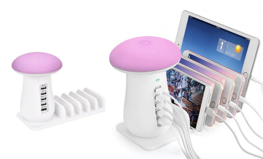 Mushroom LED Desk Lamp with 5-Port USB Charger