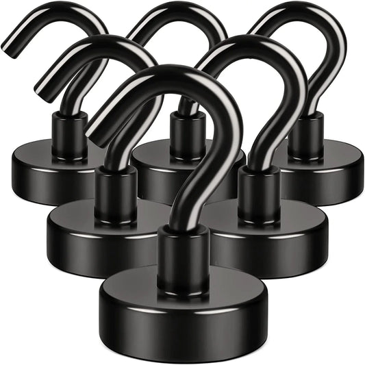 Black Magnetic Hooks, 25lb Hold, Epoxy Coating, Refrigerator/Cruise Use